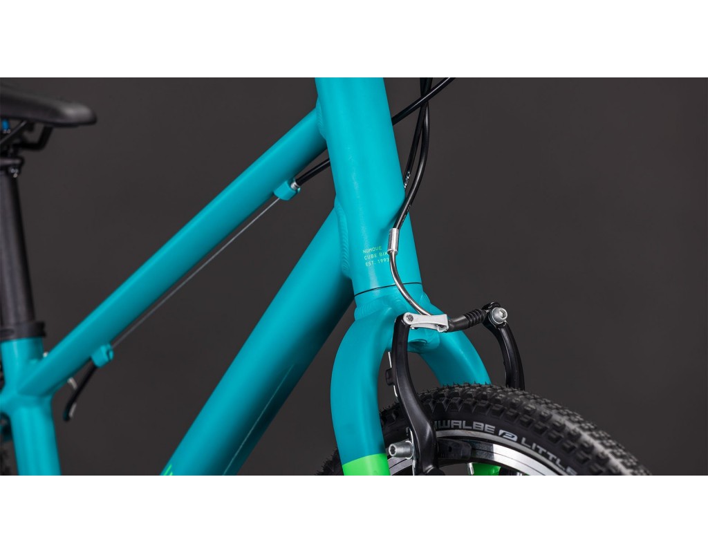 Posebna pažnja posvećena je detaljima: uži volan i ergonomske ručke savršeno odgovaraju manjim rukama, dok poluge V-kočnica osiguravaju lako upravljanje i sigurnost. Potpuno podesiva CUBE lula omogućuje prilagodbu visine i dosega upravljača, pa bicikl može rasti zajedno s djetetom. Uz Shimano 8-brzinski prijenos, mali biciklisti dobit će jednostavno rukovanje i širok raspon prijenosa za sve vrste terena.