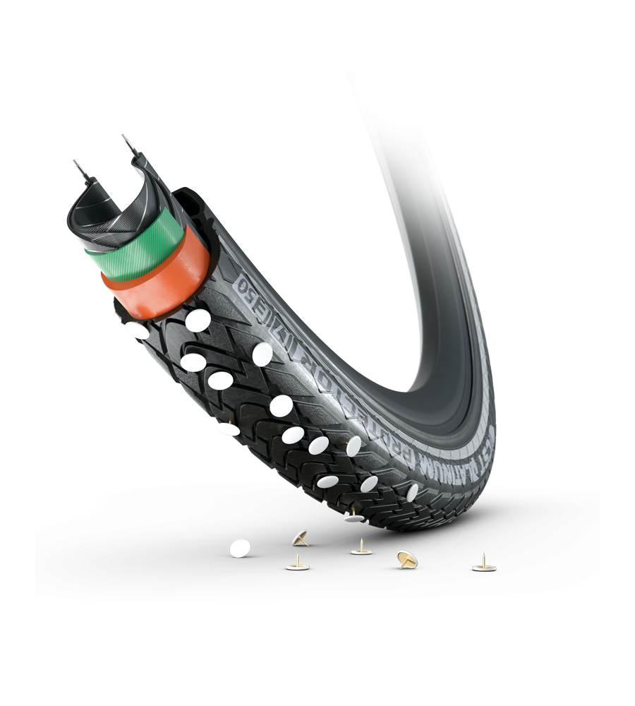 Odlična kombinacija dveh materialov. Gumijasta zaščita pred vbodom, ki potiska nazaj ostre elemente in ročna EPS plast, ki preprečuje, da bi se ostri predmeti dotaknili notranje plasti. Zato nudi dvojno zaščito!