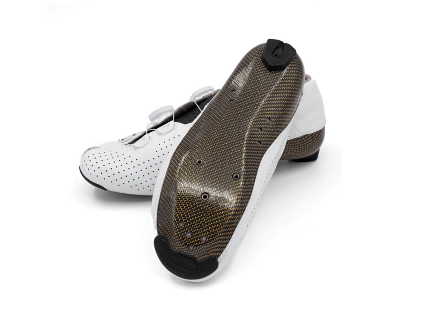 Podplat: Čolnasto oblikovan 3K karbonski podplat z zlatimi vlakni – lahek, izjemno tog in odporen na praske
